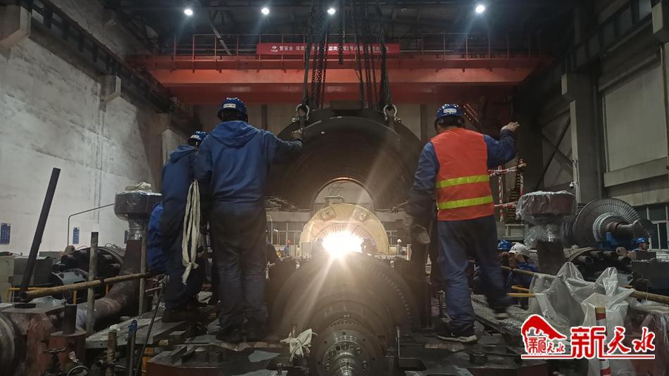 在2号机组检修现场,机械敲打碰撞声、电焊声、指挥人员口哨声交织回响,蓝色制服工作人员忙碌着,正在紧张有序地进行着高中压缸扣缸收尾工作。
