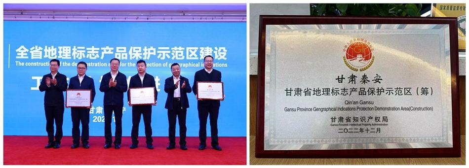 会上,为获批筹建的国家级和省级地理标志产品保护示范区进行了授牌,秦安县获批筹建甘肃省地理标志产品保护示范区。