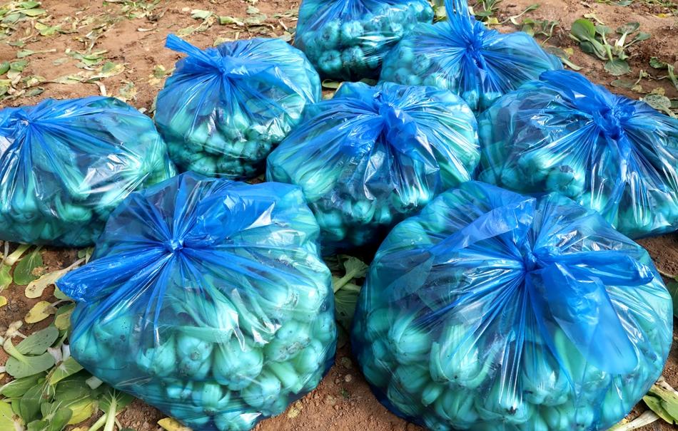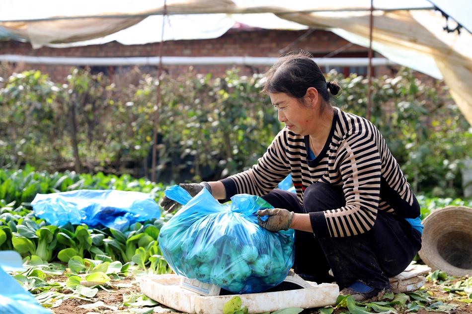 蔡志学正在和家人一起铲菜、称重、装袋。“我承包了园区六座棚,种植蔬菜,产量非常好,价格也不错,批发到周边县区的超市,每座大棚产量大约4000斤,经济效益很好。”蔡志学笑着说。