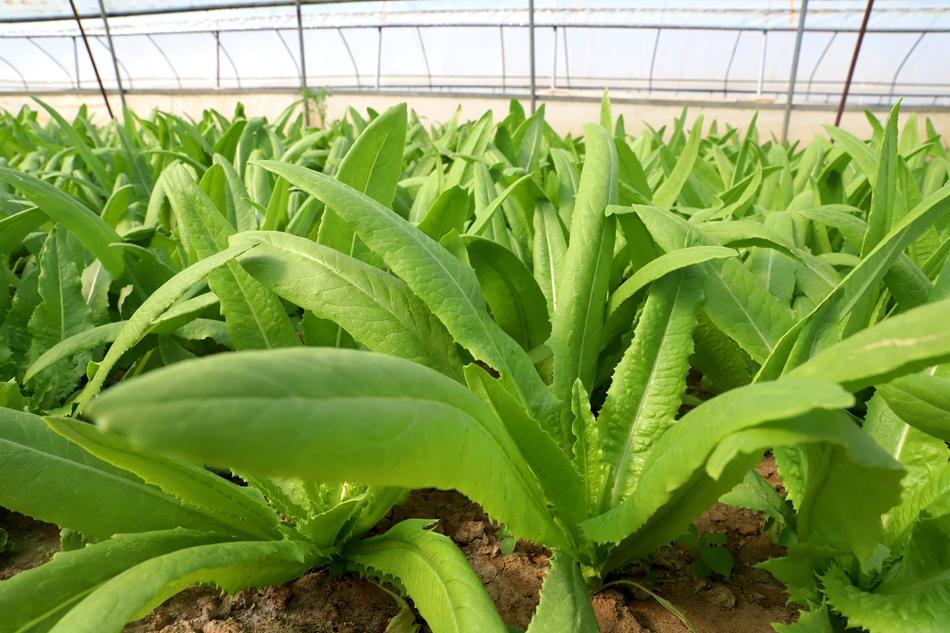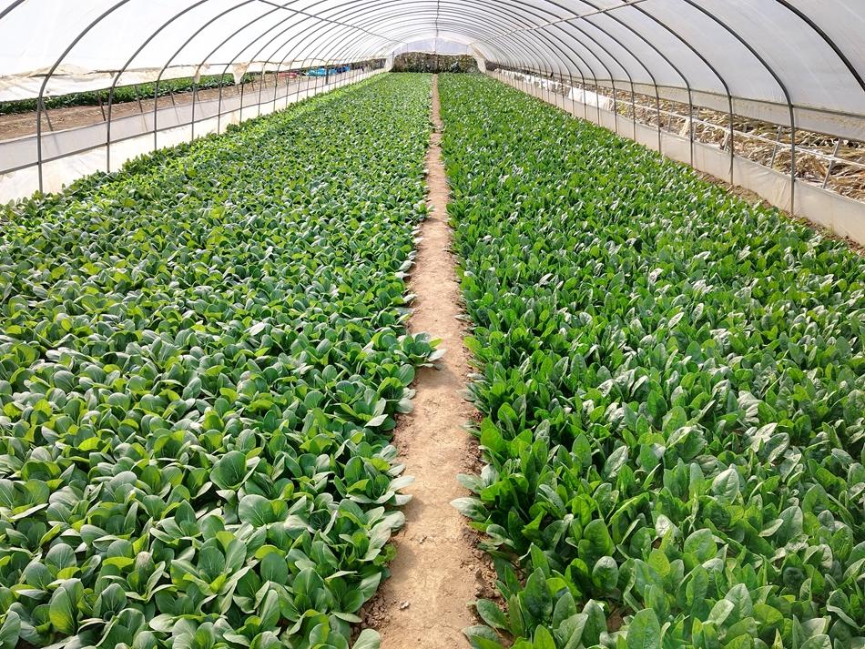红堡镇菜农蔡志学种植蔬菜已二十年有余,来到他的蔬菜大棚前,不禁让人眼前一亮,大棚内菠菜、生菜、油麦菜等各类“火锅”菜青翠欲滴,长势正旺,既“好看”又好卖。