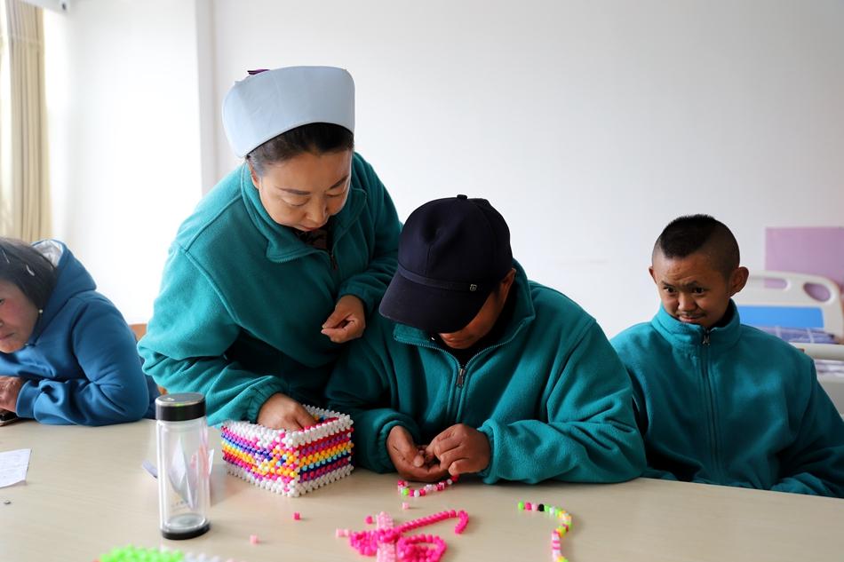 “我来残疾人托养中心工作有3年了,主要负责残疾人康复及日常护理照料,对重度残疾人进行特别护理,对于精神,智力方面的残疾人开展认知能力训练、学习能力训练、手工制作、心理健康教育、游戏课堂教育、娱乐等,多方面提升其生活自理能力。”清水县颐康康复托养中心康复护理吴娟娟说。