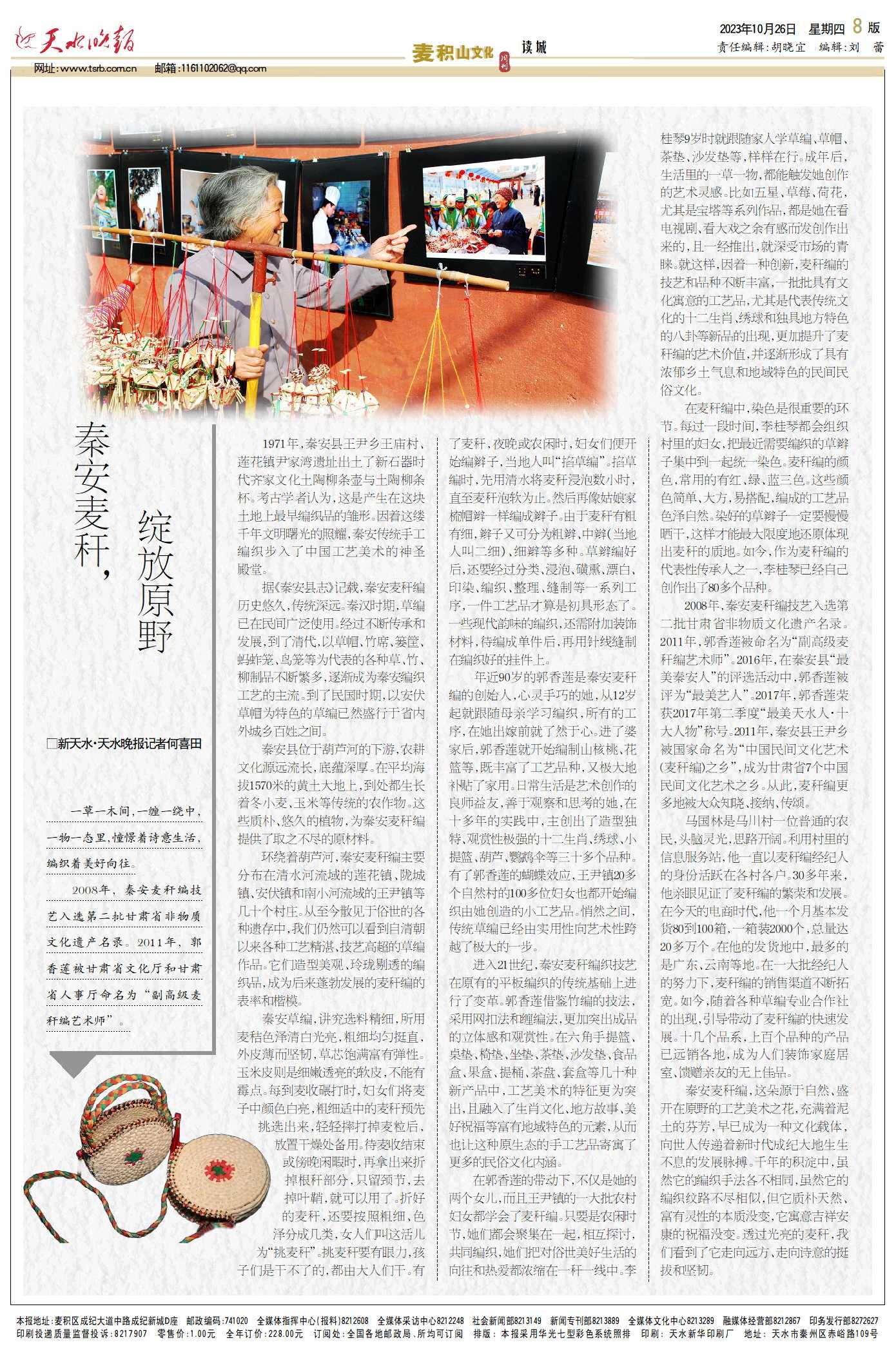 秦安麦秆编,这朵源于自然、盛开在原野的工艺美术之花,充满着泥土的芬芳,早已成为一种文化载体,向世人传递着新时代成纪大地生生不息的发展脉搏。千年的积淀中,虽然它的编织手法各不相同,虽然它的编织纹路不尽相似,但它质朴天然、富有灵性的本质没变,它寓意吉祥安康的祝福没变。透过光亮的麦秆,我们看到了它走向远方、走向诗意的挺拔和坚韧。