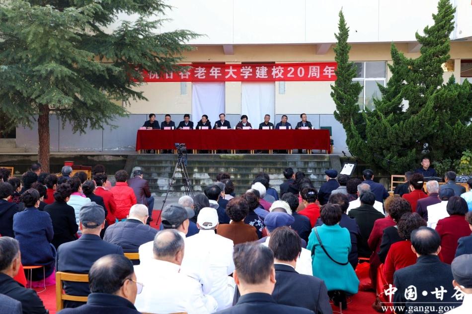 新天水讯 据甘谷县融媒体中心消息 11月1日,甘谷老年大学建校20周年庆祝大会举行。县委常委、组织部部长杜兴出席并讲话。县政协原主席、甘谷老年大学校长李爱菊致辞并作工作报告。县人大常委会原副主任、县老年书协主席张学林,县人大常委会原副主任、县老年书协副主席韩金鼎受邀参加庆祝活动。