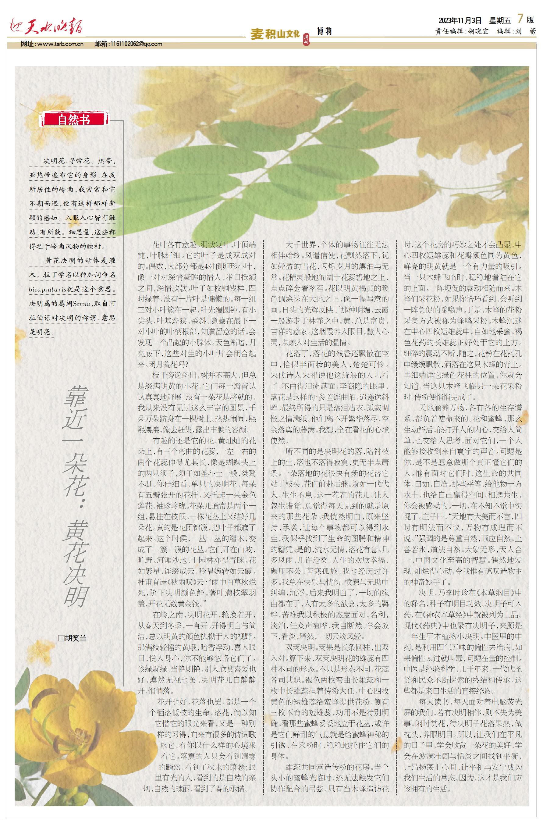 每天读书,每天面对着电脑荧光屏的我们,若有决明相伴,则不失为美事。闲时赏花,待决明子花落果熟,做枕头,养眼明目。所以,让我们在平凡的日子里,学会欣赏一朵花的美好,学会在波澜壮阔与恬淡之间找到平衡,让昂扬荡于心间,让平和与安宁成为我们生活的常态。因为,这才是我们应该拥有的生活。