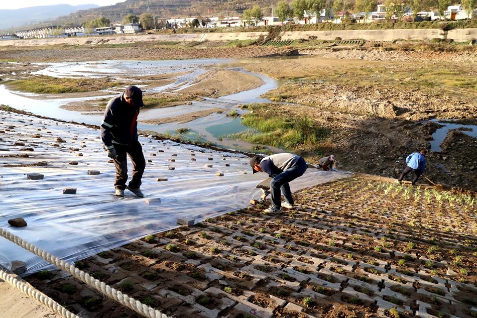 记者来到牛头河污水处理厂段,绿化人员正在紧张有序地给河堤坡面绿化进行冬季管理,给绿化带穿上“护身符”,为绿化花草安全越冬保驾护航。