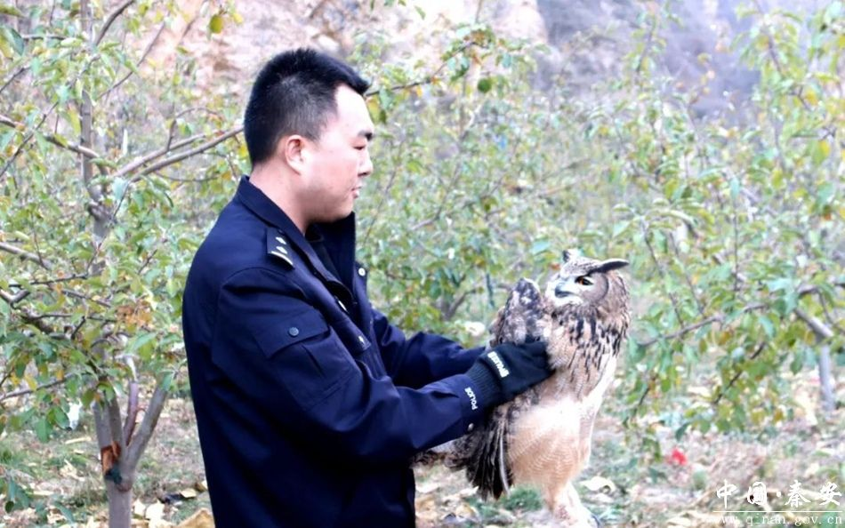 新天水讯 据秦安县融媒体中心消息 11月20日,秦安县公安局成功救助一只国家二级重点保护动物雕鸮,赢得群众赞誉。