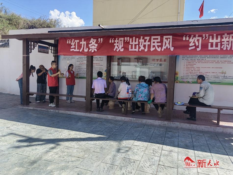 该镇常态化开展“八五”普法宣讲,创新开展党群共建和美乡村新时代文明实践活动,大力宣传村规民约“红九条”、红白事餐桌标准快板,坚持网格化排查化解矛盾纠纷,扎实推进主动创稳工作。着力推行“积分制”,通过积分兑换生活物品引导广大群众学习践行社会主义核心价值观,推动形成移风易俗乡村治理新风尚。