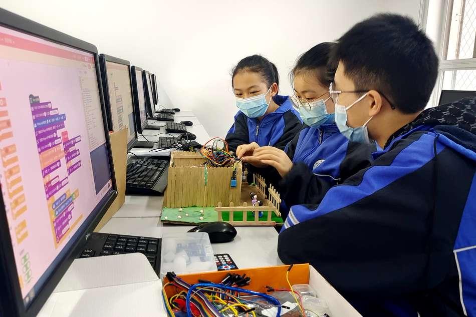 在麦积区龙园中学,一场别开生面的科技创新活动正在热烈展开。该活动基于学科核心素养下初中信息科技图形化编程与智能设计实践,探索学生科技创新能力,鼓励学生参与科技创新的积极性。实践活动中,学生发明创造出的科技创新作品屡创佳绩,该实践活动也在第七届天水市青少年科技创新大赛中获得市级二等奖。