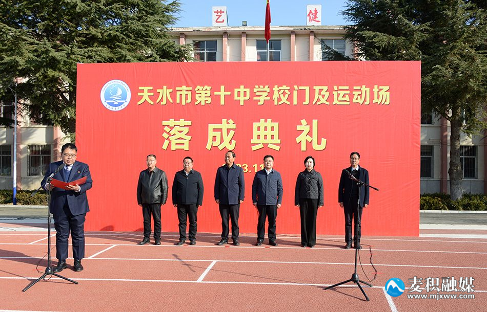 新天水讯 据麦积区融媒体中心消息 11月30日,天水市第十中学新建校门及运动场落成典礼举行。 区委书记康泰来出席典礼并为新校牌揭牌,区委副书记、区长赵虎生致辞,区委常委、宣传部部长温建军,区政府副区长杨杨参加典礼。