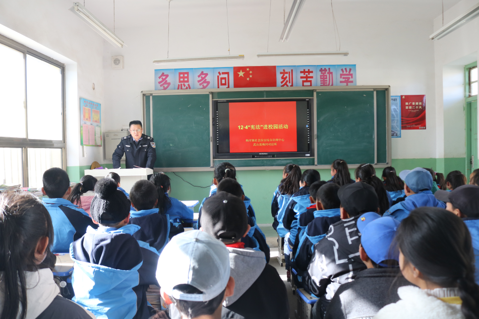 在杨河镇坪道小学,杨河司法所所长走进课堂开展宪法宣传进校园活动,一场别开生面的国家宪法日主题活动正在进行。工作人员为同学们讲解了为何设立国家宪法日、国家宪法日的由来、国家宪法日设立的重大意义等,引导孩子们培育和践行社会主义核心价值观,树立宪法意识、培养法治信仰,做学法知法懂法守法好少年。