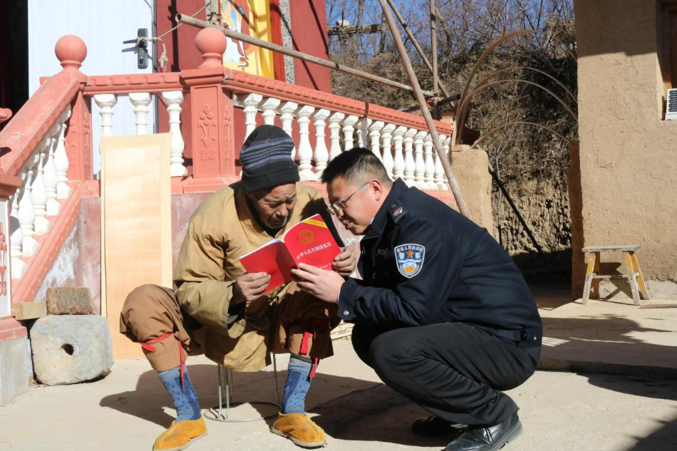 在杨河镇西山村,工作人员走进宗教场所,向宗教人士宣传宪法、国家安全法、宗教事务条例等法律法规,引导宗教人士尊法学法守法用法。