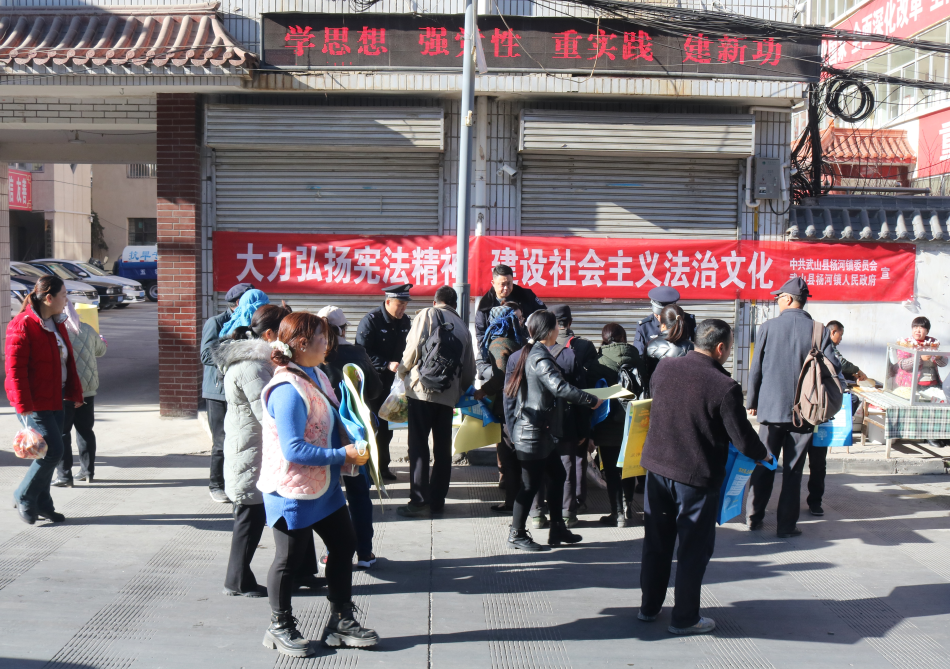 12月4日,杨河镇联合综合执法队、综治中心、杨河司法所、杨河派出所等单位,利用逢集日,在杨河镇区开展了宪法集中宣传。活动现场,工作人员发放宣传资料、讲解法律政策,赶集的村民们围拢在“普法摊位”前,咨询婚姻家庭、土地流转、劳务用工等方面的问题。工作人员结合典型案例,耐心进行细致解答,问题很快得到解决。