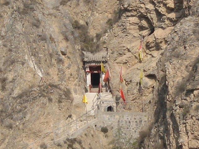 “龙马洞”处在中滩镇余家峡村附近九龙山的半壁,沿着依山砌成的石阶攀援而上,走几十米,石阶没有了,只有石壁上开凿的道路,又陡又窄,大有足登天梯之感。攀登到顶端,嶙峋峭壁之间就来到了“龙马洞”的洞口。抬头望天,暮云低垂、举手可揽;俯视山川,但见平畴沃野、云树苍茫、房舍点点,中有渭水,玉带般平缓的流淌;再远看:相距不过两三里路,中间仅隔一条渭河,蓄势而起、在三阳川群峰中享有“至尊领地”的卦台山苍莽中尤显巍峨。