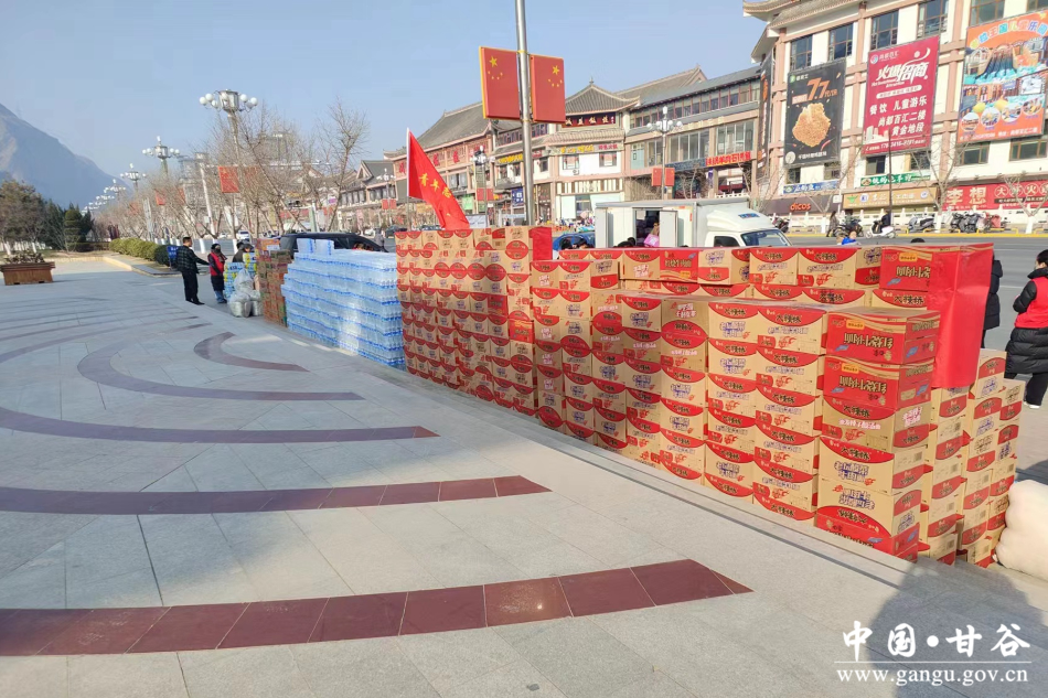 新天水讯 据甘谷县融媒体中心消息 12月20日早上,一排排救灾物资整齐地码放在水上公园路边,等待运输车辆运往临夏积石山县地震灾区,助力积石山县抗震救灾工作,帮助灾区人民共渡难关。