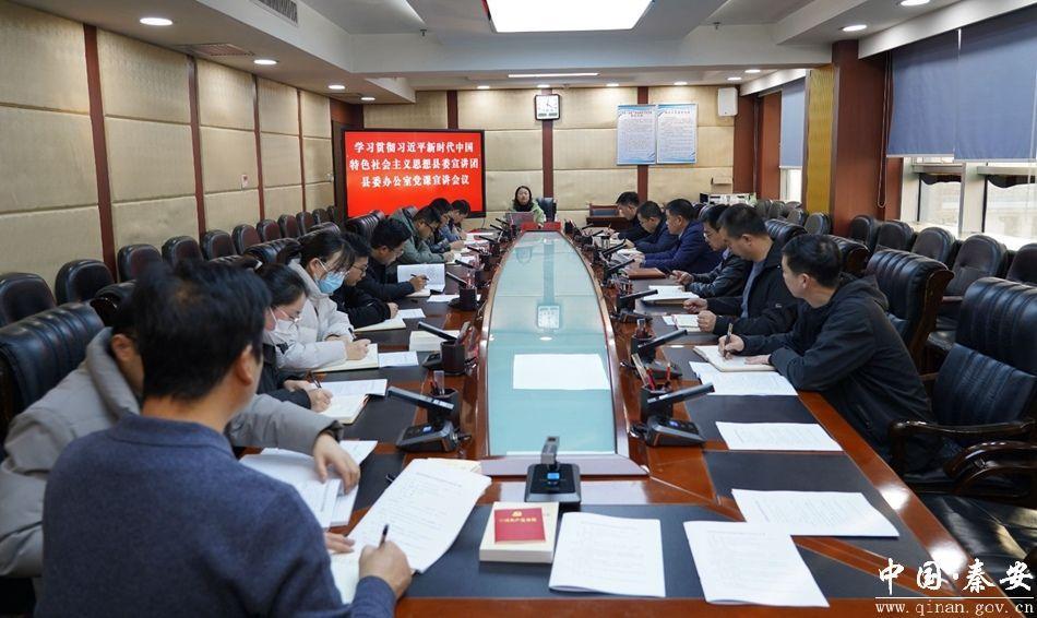 新天水讯 据秦安县融媒体中心消息 12月22日,学习贯彻习近平新时代中国特色社会主义思想宣讲会在县委办公室举行。县委宣讲团成员、县委党校讲师贾慧以“习近平新时代中国特色社会主义思想是党和国家必须长期坚持的指导思想”为题,为县委办公室全体党员干部作了专题辅导。