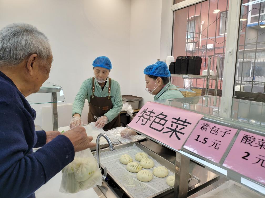 临近中午,辽宁省沈阳市大东区东胜社区网格员在群中发布了“今日菜谱”:烧排骨、烧茄子、雪里红炖豆腐……88岁的居民唐孝周来到社区开办的惠民食堂,购买了一菜一饭,和邻居边聊边吃。