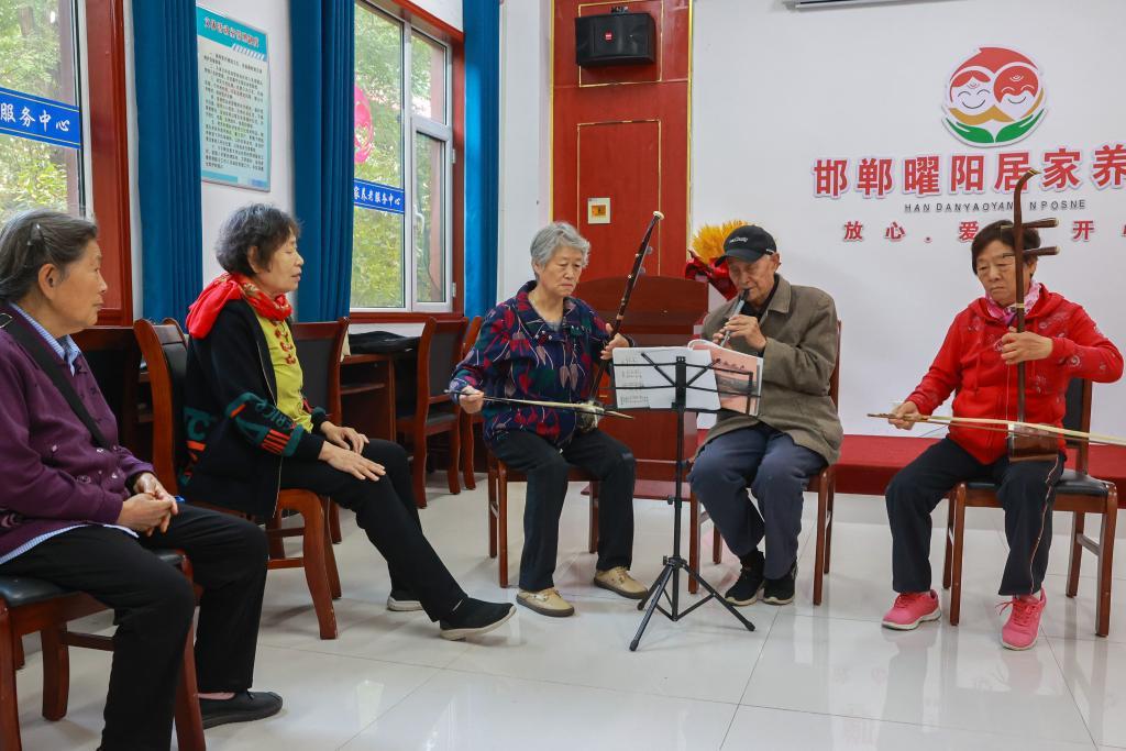 图为河北省邯郸市邯山区曜阳养老服务中心内,老人在学习乐器演奏。新华社记者赵鸿宇 摄