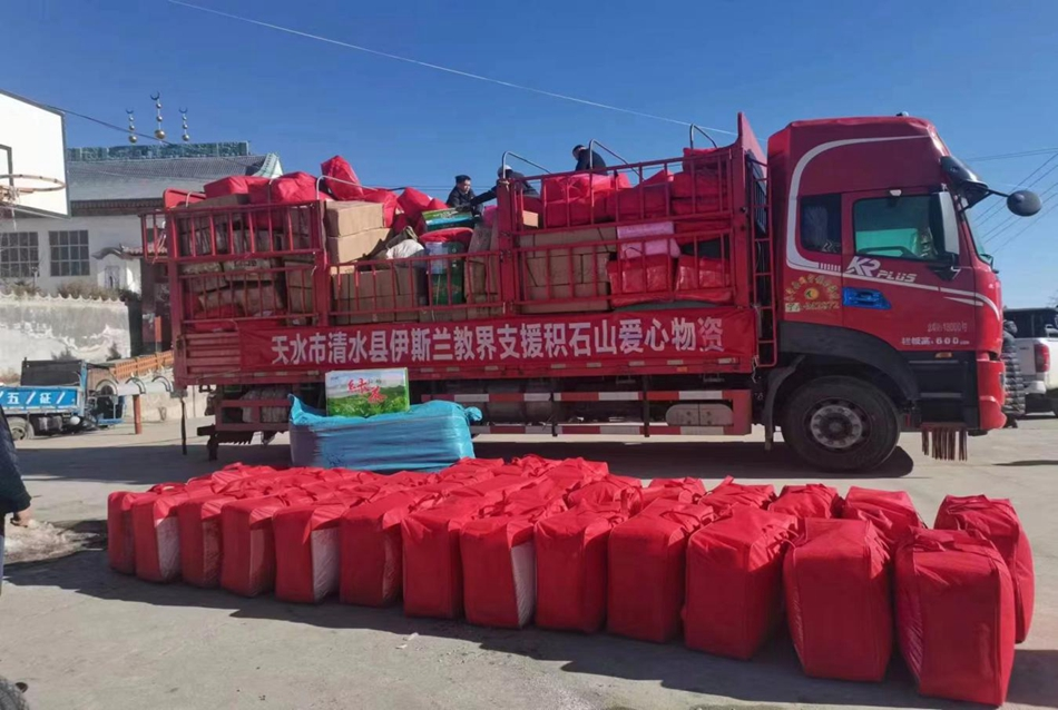 清水县伊斯兰教协会积极响应清水县委统战部和省、市伊斯兰教协会倡议,组织动员伊斯兰教教职人员和信教群众大力弘扬乐善好施、奉献爱心、扶危济困的优良传统,捐赠毛毯棉被、棉袄皮靴大衣等保暖物品1857件,茶叶8大箱,折合人民币157150元,已于12月24日平安送达积石山县。