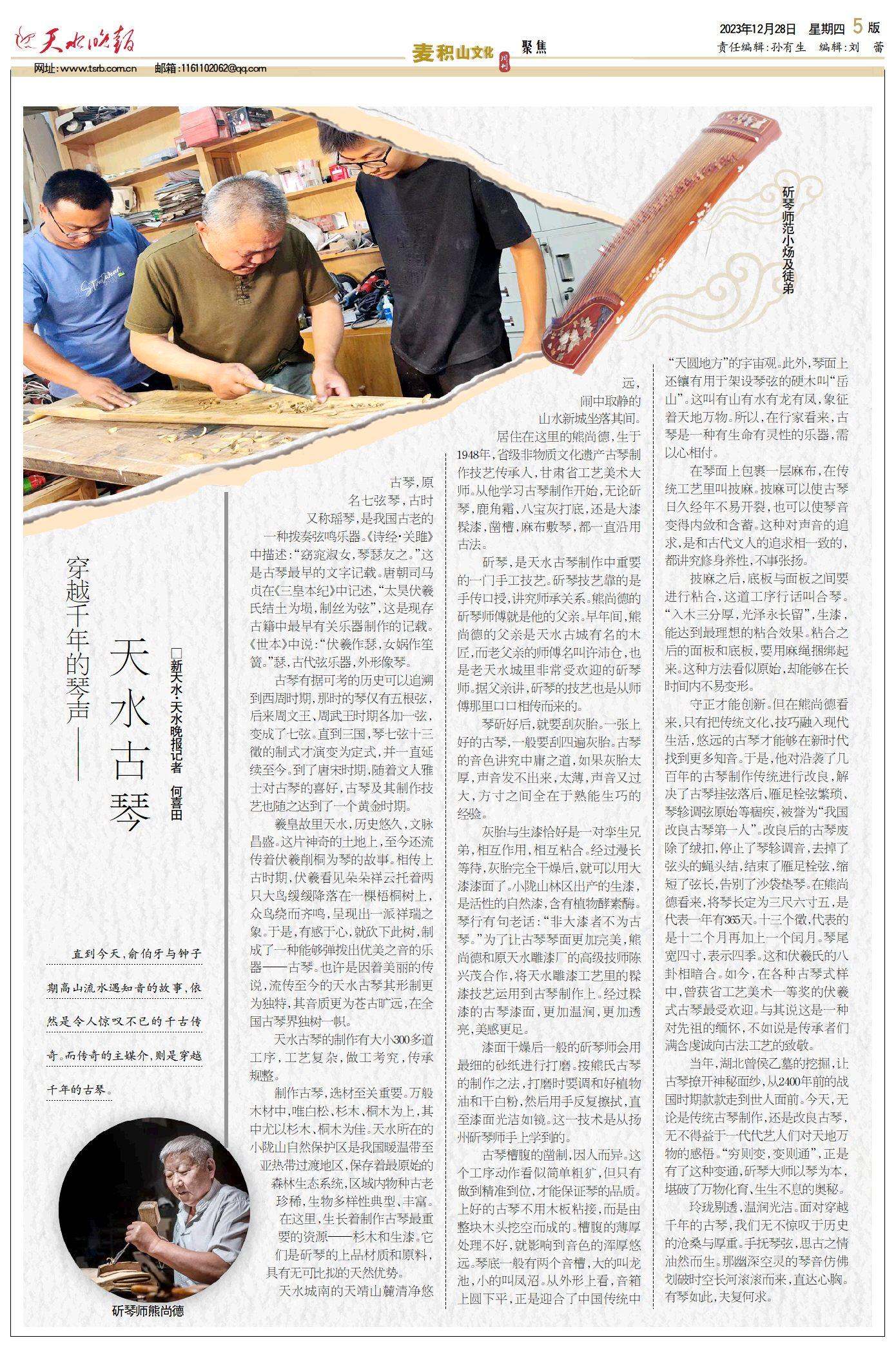 天水古琴的制作有大小300多道工序,工艺复杂,做工考究,传承规整。