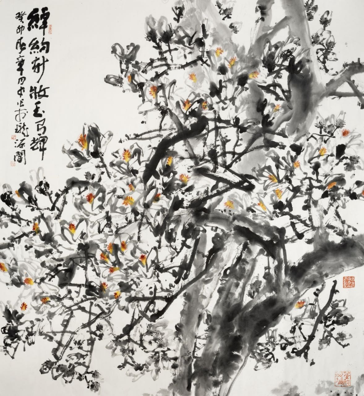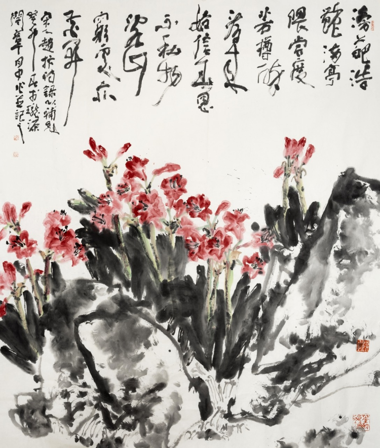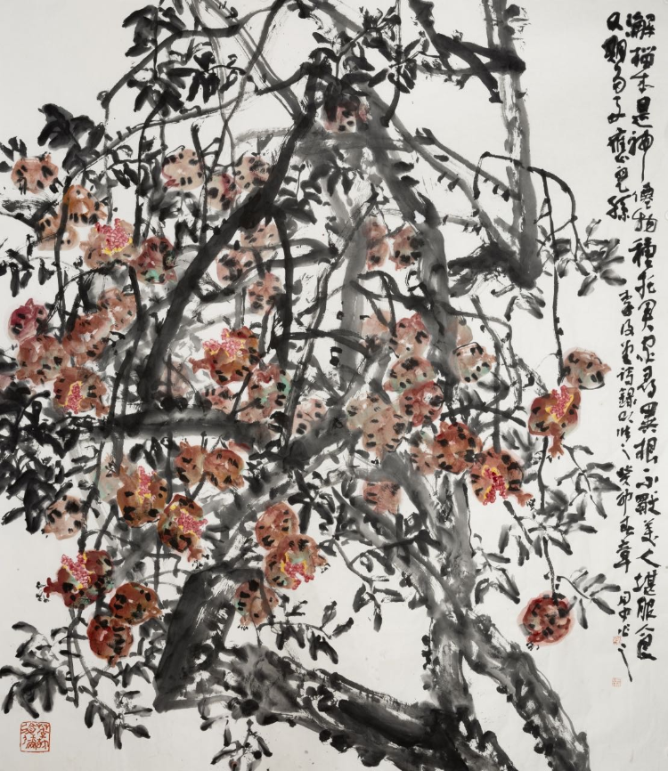 徐渭、八大山人、石涛、陈洪绶、任伯年、吴昌硕、齐白石、张大千、潘天寿等大师都对他的艺术进步产生了极大影响。以最大的力气向传统学习,又以最大的勇气从传统中走出来,完成了他继承传统的“长征”。