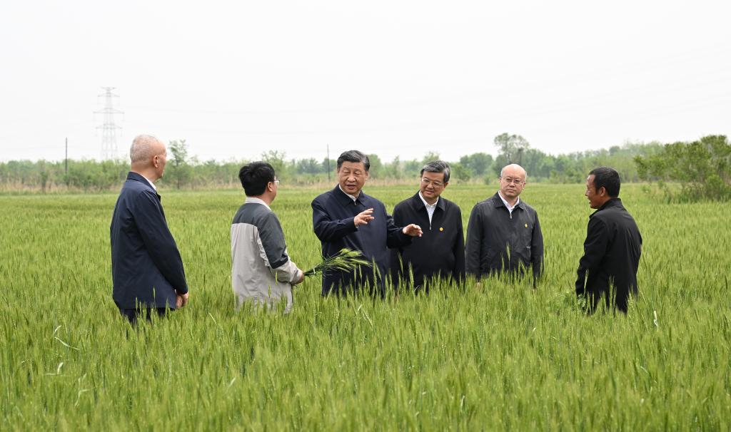 2023年5月11日至12日,中共中央总书记、国家主席、中央军委主席习近平在河北考察,并主持召开深入推进京津冀协同发展座谈会。这是11日上午,习近平在沧州市黄骅市旧城镇仙庄片区旱碱地麦田考察时,同种植户、农技专家亲切交流。