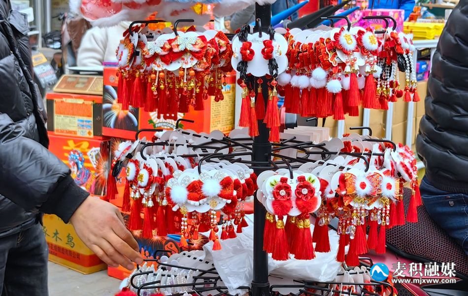 随着涌动的人流走进集市深处,琳琅满目的商品令人目不暇接,除了蔬菜水果、服饰玩具,还有柿饼、糖炒栗子等美味小吃,让人垂涎欲滴。与此同时,写有“抬头见喜”“五谷丰登”等吉祥语的春联,则寄托了人们对新年的祝福和期待。