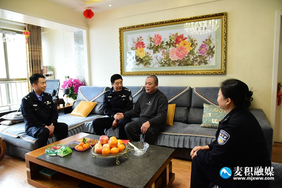 在慰问退休老干部时,慰问组详细了解他们的身体健康、家庭生活等情况,对他们为麦积公安事业做出的突出贡献表示衷心感谢,叮嘱他们要保重身体、乐观生活,希望他们退休不褪色,继续关心和支持麦积公安事业发展,为公安工作献计献策,共同为麦积公安事业长远发展做出应有贡献。
