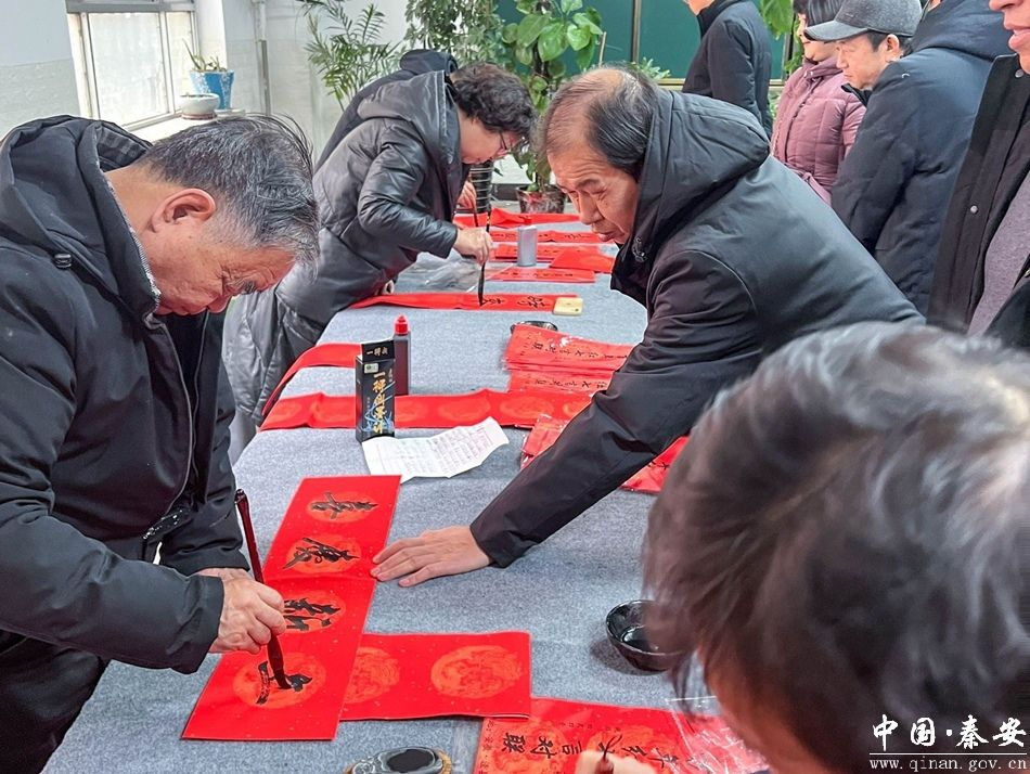 会后,盟内多位书法爱好者齐聚一堂,长桌排开,笔墨铺就,挥毫泼墨,一幅幅包含浓浓年味、寓意吉祥的春联福字跃然纸上。盟员们一边欣赏着书画家们的精湛技艺,一边品评着春联的深意。在欢声笑语中,既弘扬了中华民族的传统文化,营造了文明祥和的节日氛围,又为盟员们送去了辞旧迎新的美好祝福,增强了民盟秦安县总支的凝聚力。
