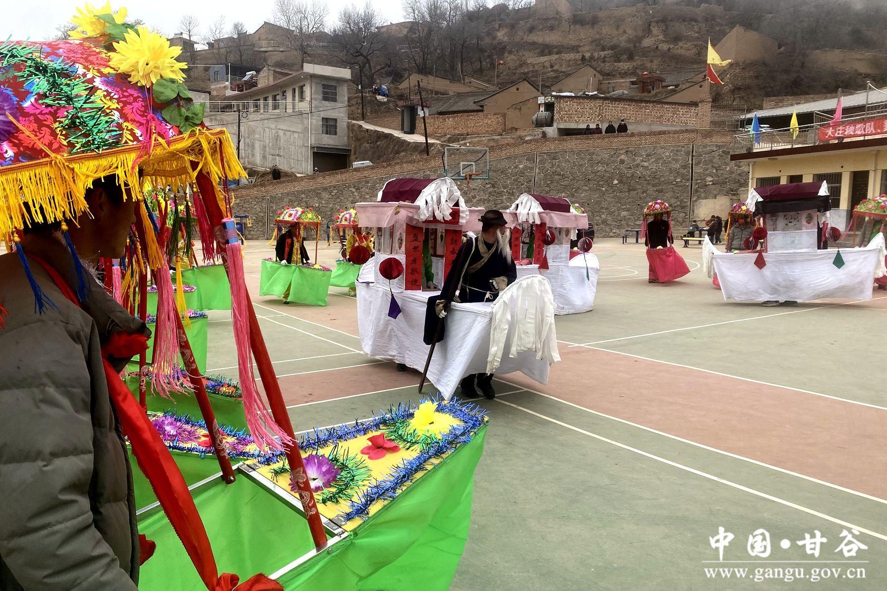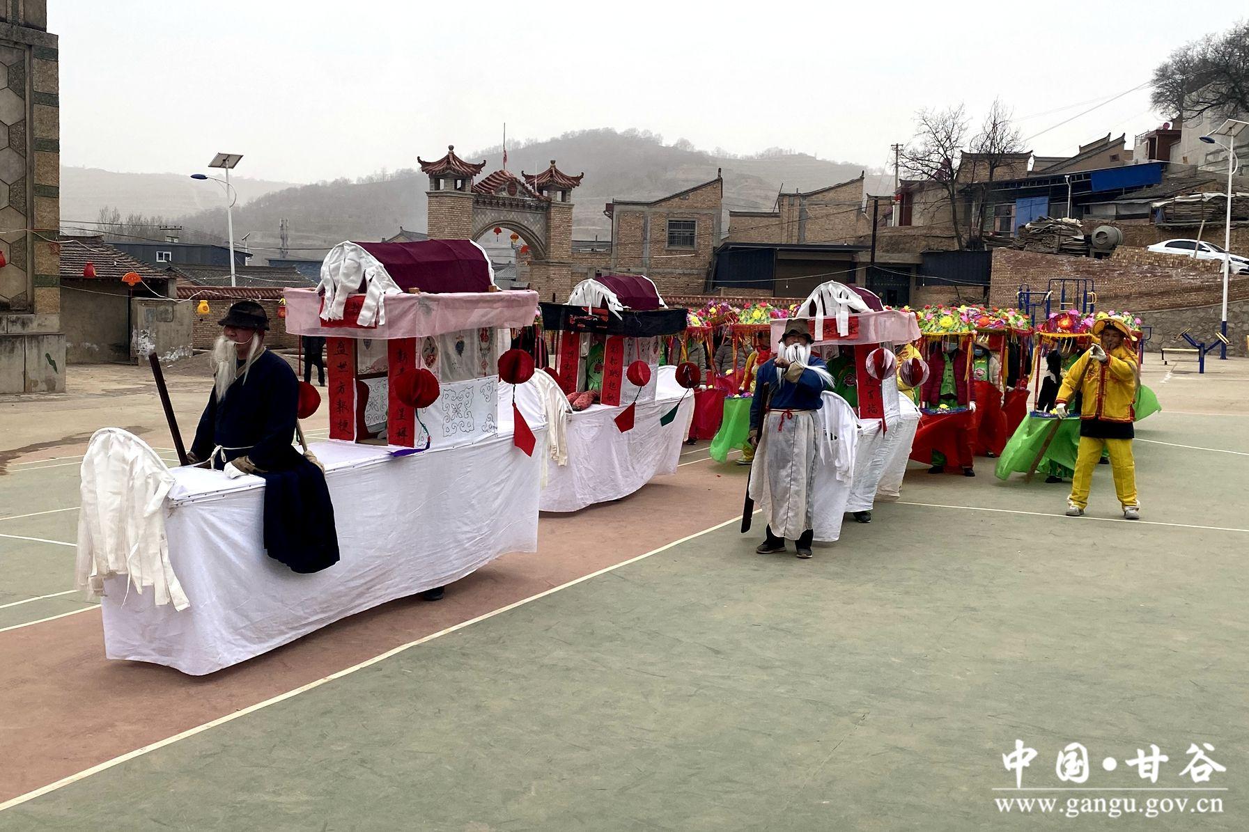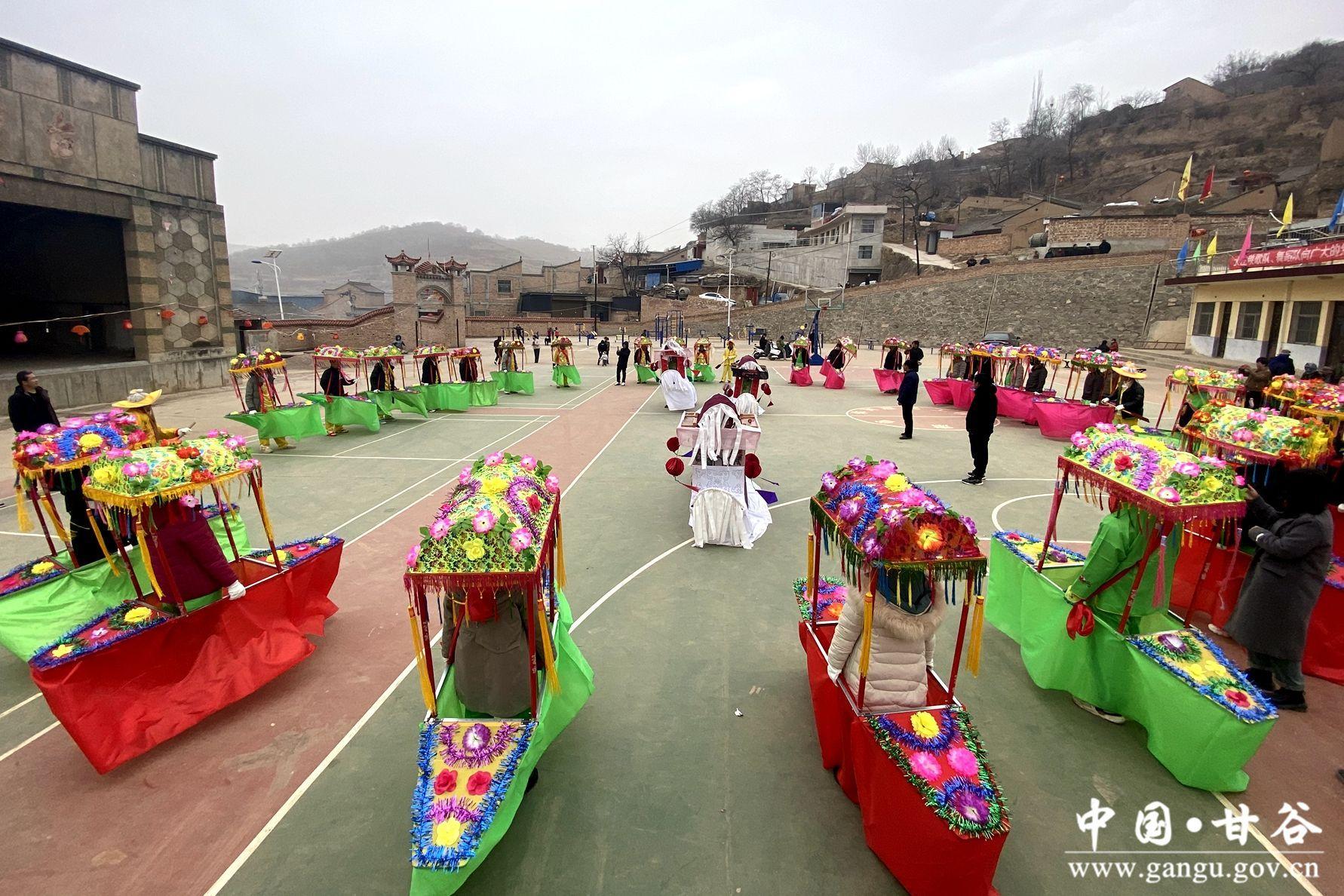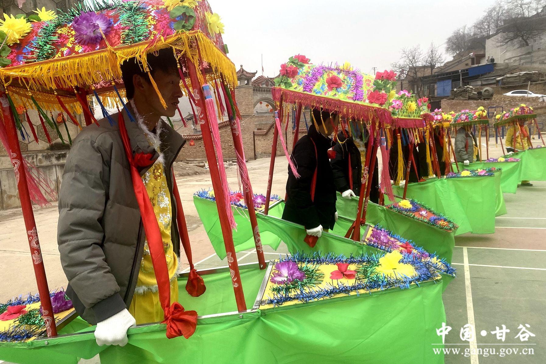 新天水讯 据甘谷县融媒体中心消息 锣鼓声声辞旧岁,喜气洋洋闹元宵。连日来,大庄镇锣鼓喧天、热闹非凡,社火队员们正在进行跑旱船、舞龙舞狮等传统秧歌的排练,迎接即将到来的元宵节。