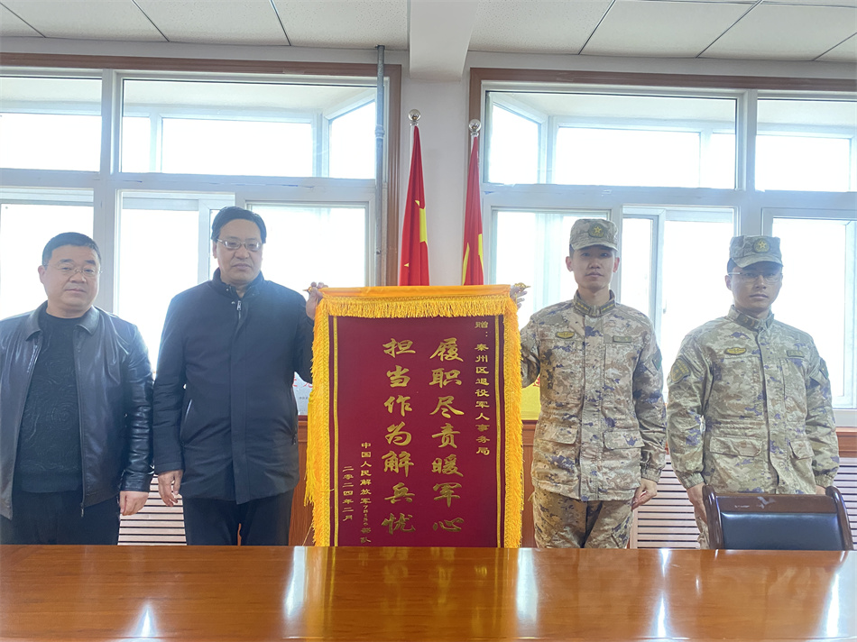 新天水讯 据秦州区融媒体中心消息 2月28日,区驻地某部队官兵一行将写有“担当作为解兵忧 履职尽责暖军心”字样的锦旗送到了秦州区退役军人事务局,对秦州区退役军人事务局在双拥共建工作中,为部队发展建设给予的支持和帮助表示感谢。