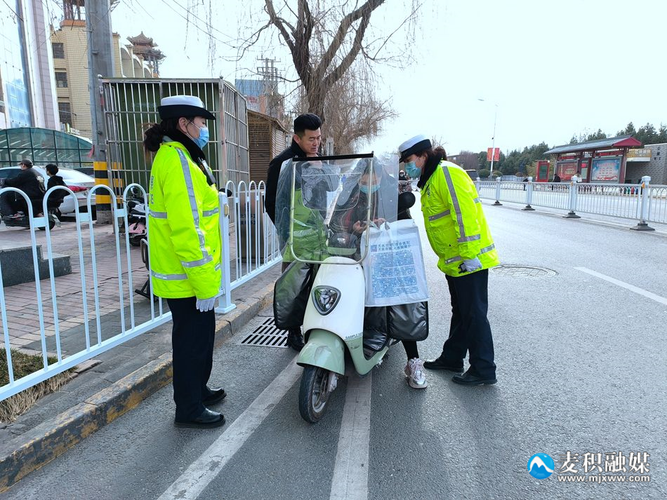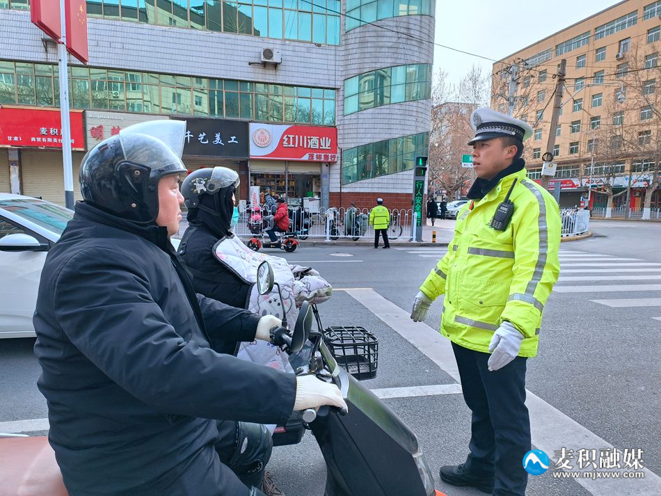 3月6日,记者看到身着不同制服的麦积公安民警在全区各重点交通路口路段,对行人闯红灯、不走人行道等不文明交通行为及骑乘摩托车和电动车不戴安全头盔等行为进行纠正、劝导和查处,并采取整治与教育相结合的方式,引导群众遵守交通规则,养成文明出行好习惯。