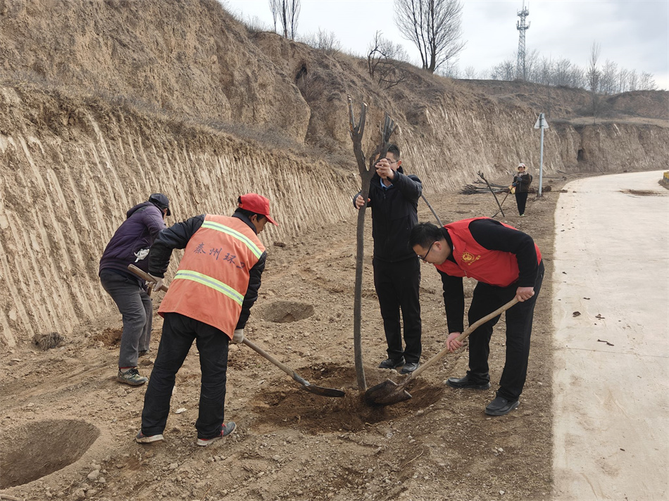在植树现场,大家热情高涨,干劲十足。天水镇林分站的技术人员也亲临现场,巡回指导大家在栽树时要特别注意技术要领和栽植事项。大家分工协作、默契配合,现场呈现出一派热火朝天的劳动场面。在镇村干部、镇林分站的技术人员、志愿者、公益性岗位人员齐心协力的配合下,道路两侧种下一株株红叶李、元宝枫、白皮松,在初春的微风中挺立,为天水古镇增添又一抹新绿。此次春季国土绿化植树大会战,计划栽植红叶李2300株、元宝枫2300株、白皮松2600株,总长12公里,全部绿化工作将于本周末全部完成,与去年同期相比,整整提前一个月。