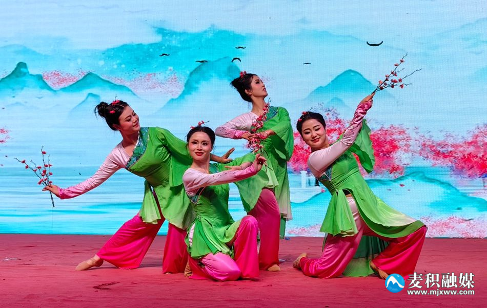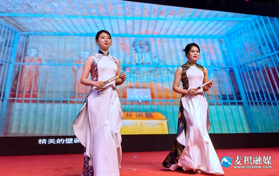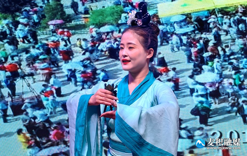 在民俗非遗展演结束后,各类歌舞文艺表演也轮番登场。舞蹈《一碗麻辣烫》以及歌手马艳带来的歌曲《天水麻辣烫》《人间天水》带动了全场气氛。“热辣滚烫”的歌声和舞姿,诉说着对天水的热爱,更展示出天水人民的热情好客和积极向上的精神风貌。武术表演《渭川武魂》、秦腔表演《宁远秦韵》、综艺《旗袍秀》,以及《青山绿水》《玉润武山》《渭川福音》《采菊东篱下》《上春山》等节目令现场观众应接不暇,赢得大家的阵阵鼓掌和喝彩声。