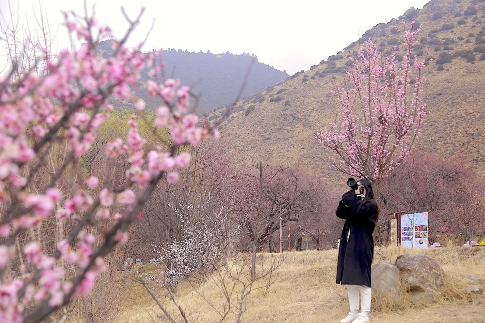 全国各地游客慕名前来观赏。广东省茂名市的张晓夫妇,开车自驾3000多公里,只为到此一睹桃花盛景。