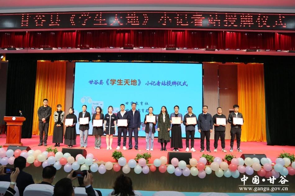 新天水讯 据甘谷县融媒体中心消息 4月18日,甘肃教育社《学生天地》小记者站甘谷县10所学校集中授牌仪式在西城区九年制学校举行。甘肃教育社副社长高万春出席授牌仪式。