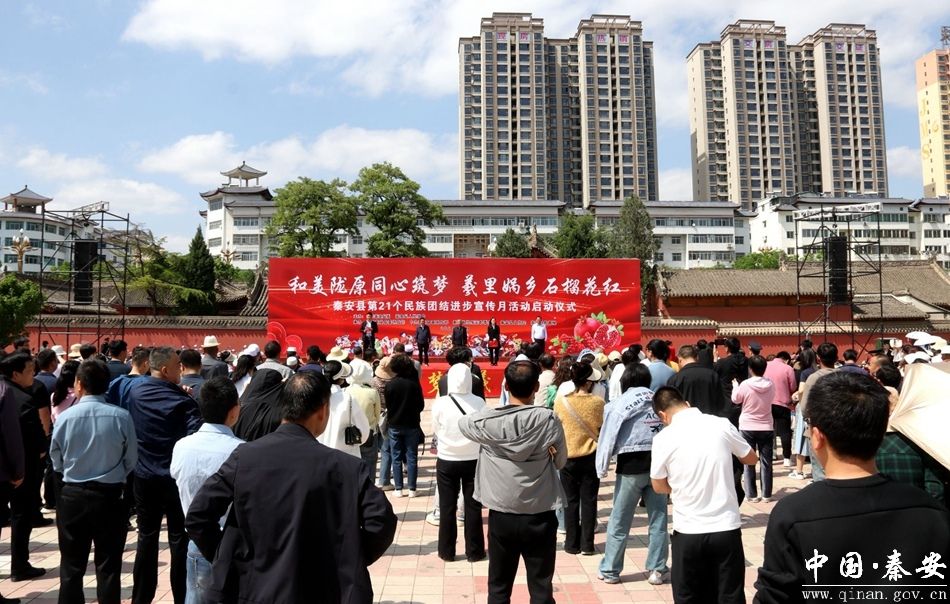 新天水讯 据秦安县融媒体中心消息 5月9日,秦安县第21个民族团结进步宣传月活动启动仪式在秦安县兴国文化广场举行。县领导姚建国、马昊莹、任云飞、郑博、陈存录及县委统一战线工作(民族宗教工作)领导小组成员单位主要负责人,民族团结进步示范区示范单位、“红石榴”各族群众互嵌式发展示范单位代表,县直单位及各镇干部职工代表,县级五大宗教团体代表人士及各族群众代表共计600余人参加活动。