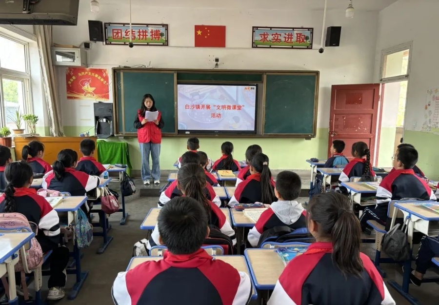 学校课堂传文明。在镇属学校,志愿者通过互动游戏、故事分享、短视频播放等方式,向学生们传授文明行为规范、文明礼仪、道德品质等知识,激发了学生们对文明的向往和追求,培养学生的文明素养,让他们在日常生活中发挥示范和引导作用,从而带动家长也养成文明的行为习惯和道德观念,切实以“小文明”带动“大文明”。