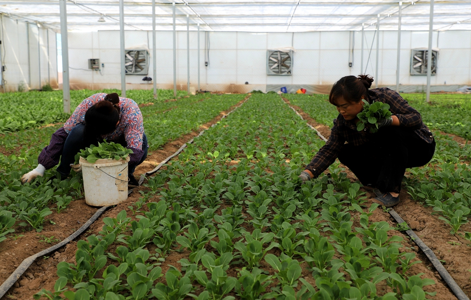 “我承包的4座大棚,共13400多平米,种植辣椒、黄瓜、油白菜、香菜、西红柿、豇豆等作物。油白菜已进入销售阶段,辣椒还没有上市。我种的小菜基本上在县城就销售了。这里每天有十余人在此务工,为他们增加收入拓宽了渠道。”永清镇马沟村连动大棚负责人张世雄说。