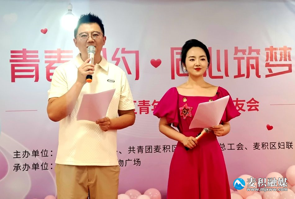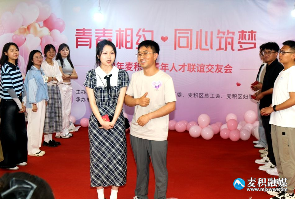新天水讯 据麦积区融媒体中心消息 甜美的歌谣、粉嫩的气球、浪漫的玫瑰……5月19日,一场以“青春相约·同心筑梦”为主题的麦积区青年人才联谊交友会在桥南国际购物广场甜美开启。在“5.20”到来之际,150名麦积单身青年欢聚一堂,共赴一场青春聚会。