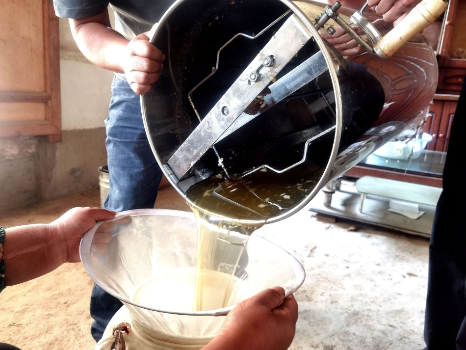 近年来,为壮大村集体经济、带动群众增收致富,明山村两委及帮扶工作队不断探索拓宽产业发展的新路径,带头发展中蜂养殖,现已形成蜜源质量安全、生产加工规范、销售渠道多元的局面。由开始的几箱试验发展到现在的50余箱,带动周边群众发展庭院经济养殖蜜蜂7户,开启了中蜂养殖“好蜂景”,为乡村特色产业发展奠定坚实基础,铺就乡村振兴“甜蜜致富路”。