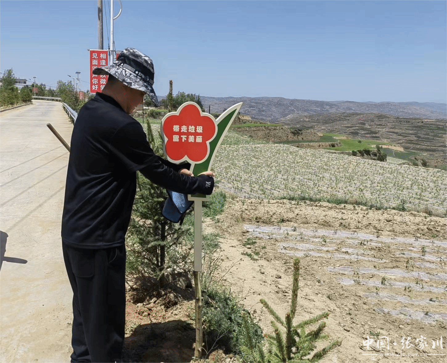 伴随着近期气温上升、天气干燥,为确保树木和花草水分充足,提高成活率,各村党员干部进行花草树苗的浇灌作业,在绿化带、小节点等地,将一块块留着“带走垃圾、留下美丽”“一草一木、需您呵护”等爱护草木提示牌栽植在道路两旁,温馨提示过往行人。