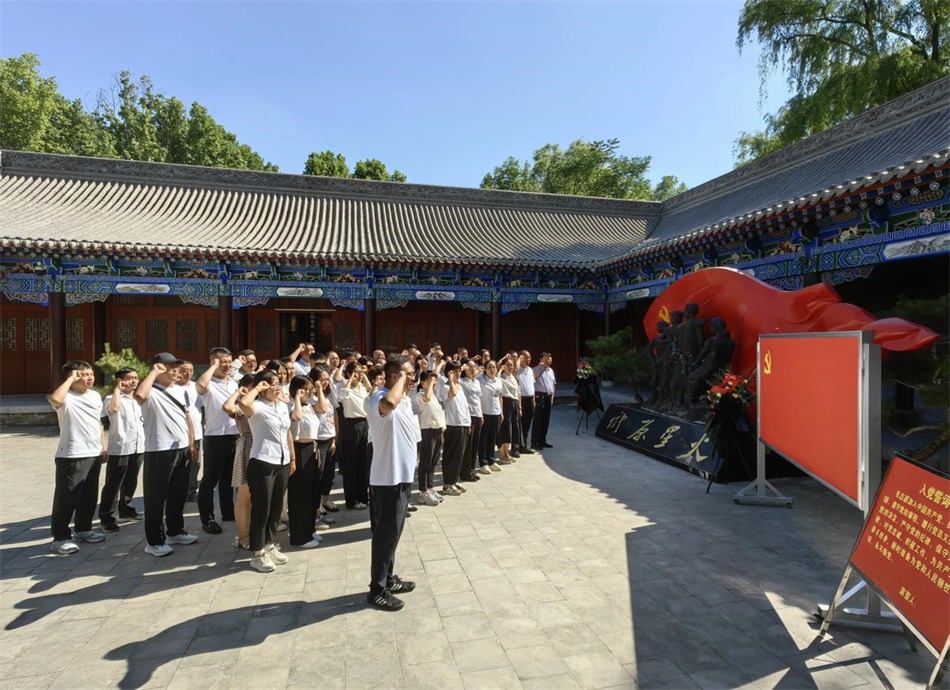 参观结束后,在鲜红的党旗面前,全体党员庄严郑重地举起右手,重温入党誓词:“我志愿加入中国共产党,拥护党的纲领,遵守党的章程……随时准备为党和人民牺牲一切,永不叛党”,以铿锵有力的宣誓声,表达不忘初心、砥砺奋进的信念和决心。