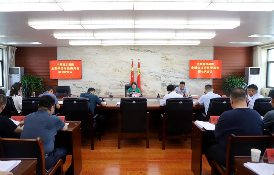 新天水讯 据清水县融媒体中心消息 6月26日,清水县委书记、县委全面依法治县委员会主任李菊霞主持召开县委全面依法治县委员会第七次会议,传达学习习近平总书记对政法工作的重要指示精神、省委全面依法治省委员会第三次会议精神、市委全面依法治市委员会第十次会议精神,总结去年工作,审议有关文件,安排部署今年法治建设重点任务。