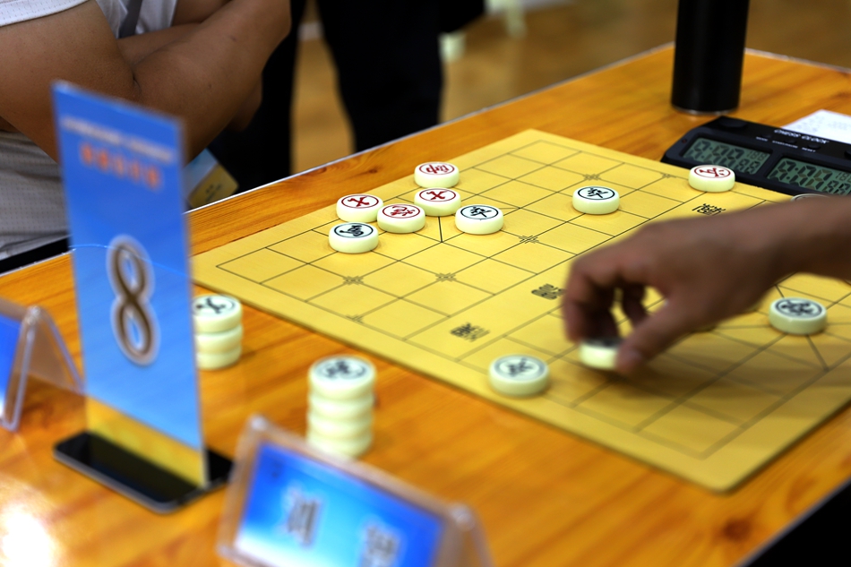 比赛现场,棋手们两两对决,隔着“楚河汉界”在棋盘中屏气凝神、排兵布阵、斗智角逐。棋盘上,兵来卒往、炮飞马跳,棋盘外,棋手们或低头沉思,或展颜欢笑,执子、落子有条不紊。