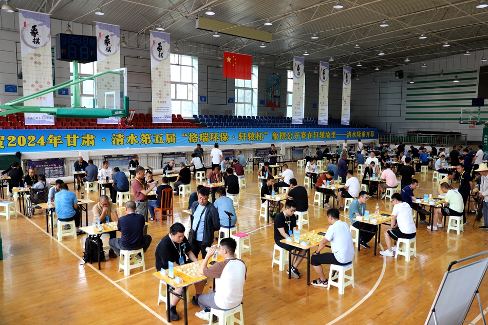 新天水讯 据清水县融媒体中心消息 6月28日上午,2024年甘肃·清水第五届“格瑞环保·轩辕杯”象棋公开赛在清水职工培训中心篮球馆进行第9-10轮比赛。