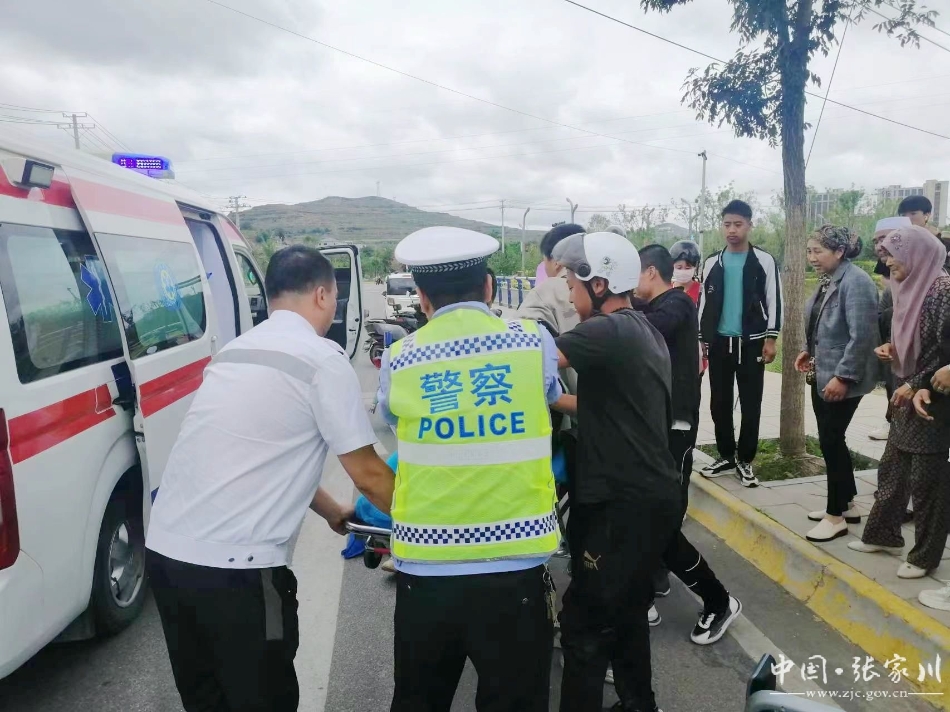 新天水讯 据张家川县融媒体中心消息 “警察同志,前面有个人受伤躺在路边……”6月27日,张家川县公安局交警大队城区中队民警阿阳大道西段巡逻组于滨河西路巡逻时,接到群众现场求助,称路边有一男子骑车摔倒受伤请求民警救助。