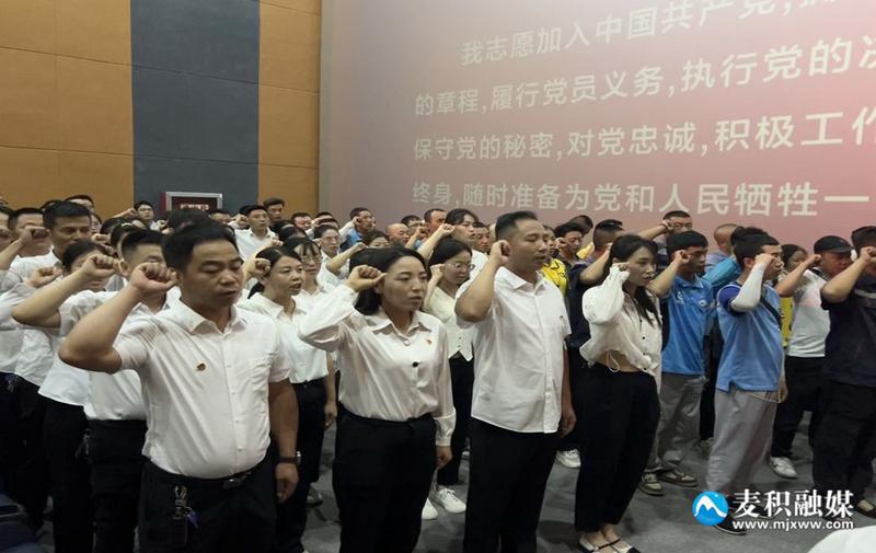 新天水讯 据麦积区融媒体中心消息 7月1日,在庆祝中国共产党成立103周年之际,麦积区举行了一场别开生面的新发展党员和新就业群体集中宣誓暨观看红色题材影片活动。活动旨在加强新发展党员的党性教育,激励新就业群体铭记历史、传承红色基因。