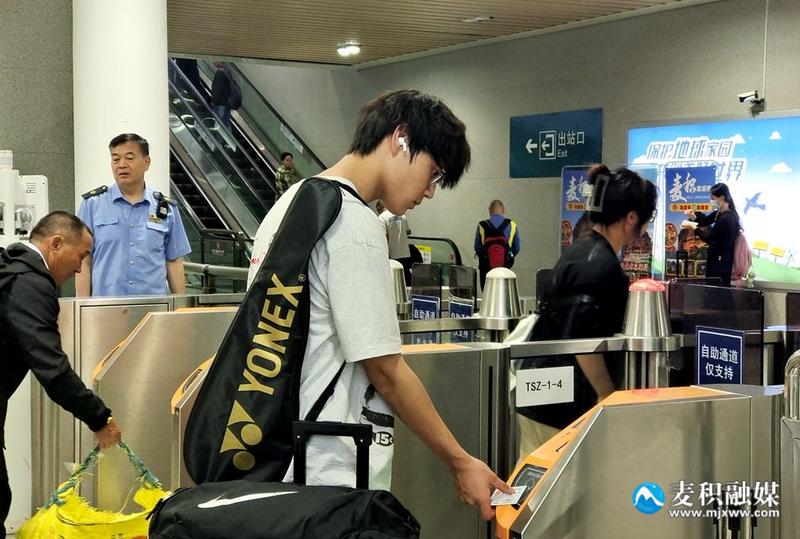 “我们天水南站目前日均发送旅客约16000人左右,到达人数约14000到15000人左右之间。暑运期间,我们也专门在安检查危工作方面进行了强化。鉴于天水美食如麻辣烫等备受欢迎,旅客携带当地特产如呱呱、面皮时,我们设有专门的置物栏。此外,我们的温馨服务台提供‘东方微笑’品牌服务,重点旅客可享受帮扶、专人通道及应急通道等特别服务,老幼病残孕旅客更可提前进站,享受优先服务。”天水南站客运值班员马燕说。