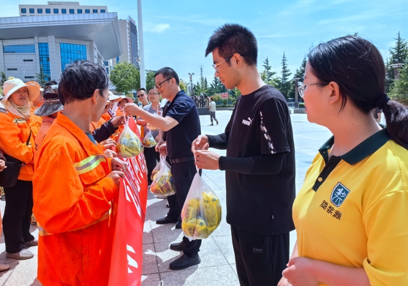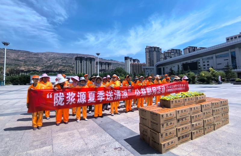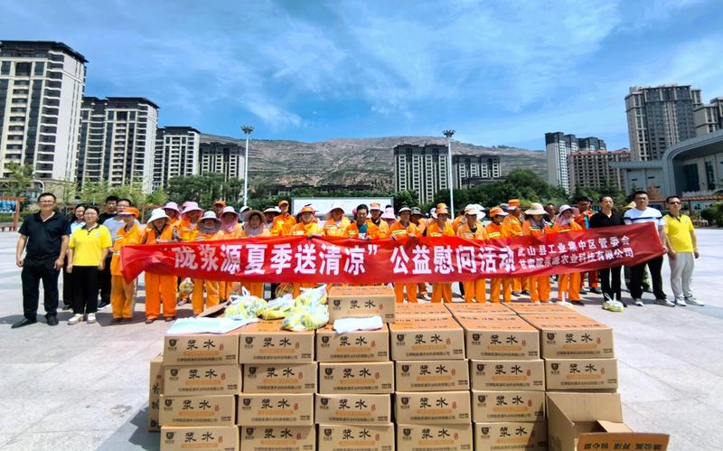 新天水讯 据武山县融媒体中心消息 “炎炎夏日送清凉,滴滴关怀沁人心”。为切实关爱在高温环境下辛勤工作的一线环卫工人,营造人人关心关爱环卫工人安全健康的良好社会氛围,7月4日,武山县工业集中区管委会相关人员携手甘肃陇浆源农业科技有限公司开展了为环卫工人夏日送清凉慰问活动。