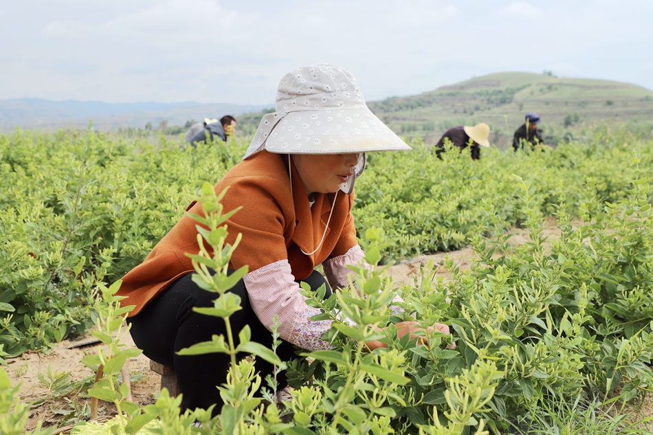 走进清水县土门镇高庙村金银花种植基地,空气中弥漫着淡淡的金银花香,连片的金银花枝繁叶茂,一簇簇黄白相间的金银花俏立枝头、生机盎然 村民们动作娴熟地采摘盛开的金银花,一派喜人的丰收景象。